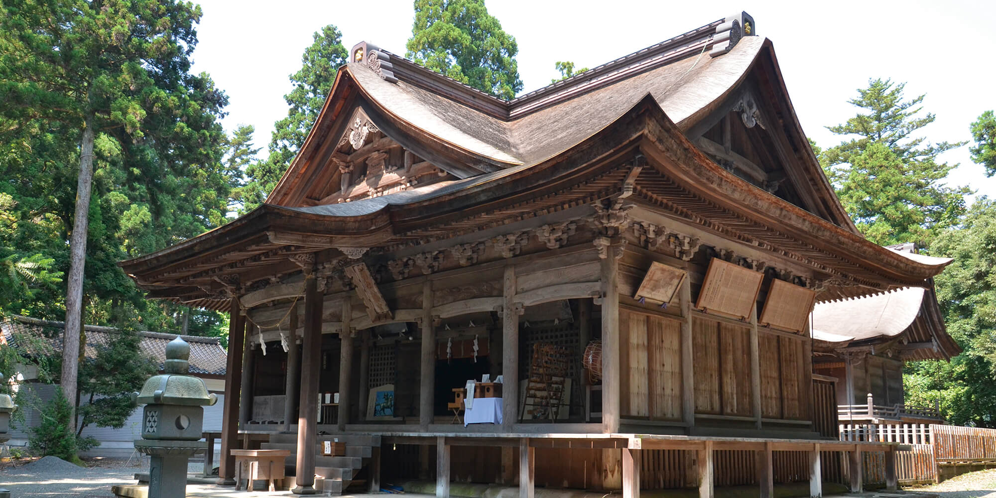 木曽義仲が戦勝を祈願したことで有名。 約1,300年の歴史を有し、国指定重要文化財となっています。 また、馬上の人物像としては日本最大級の源義仲騎馬像が建立されています。