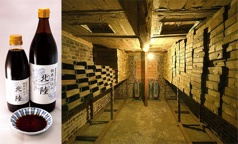 日本で唯一、レンガ室で仕込みを行っている醤油蔵。醤油づくりの過程も見学できます。極寒仕込み「北陸」は人気商品の1つ。店舗での販売の他、電話での注文にも対応可能です。